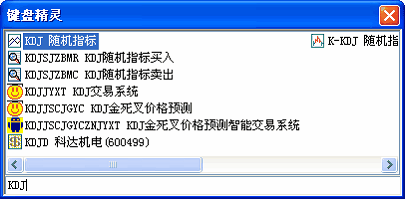 也可以通过输入指标(如:KDJ)的中英文名称,来利用键盘精灵方便地更换指标窗口里的指标。