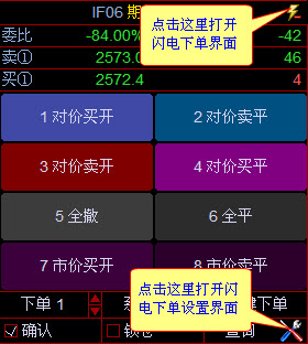 闪电下单 打开“闪电下单”界面:点击下单界面右上角 打开“闪电下单”设置:点击下单界面右下角