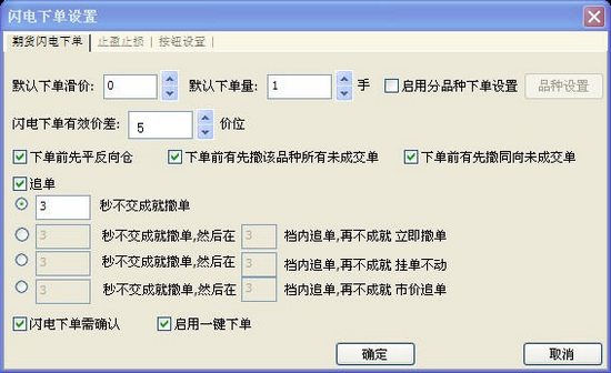 闪电下单设置包含:期货闪电下单、止损止盈、按钮设置 一、期货闪电下单: